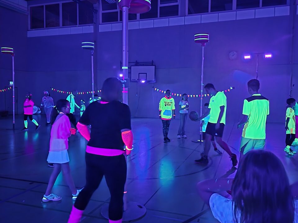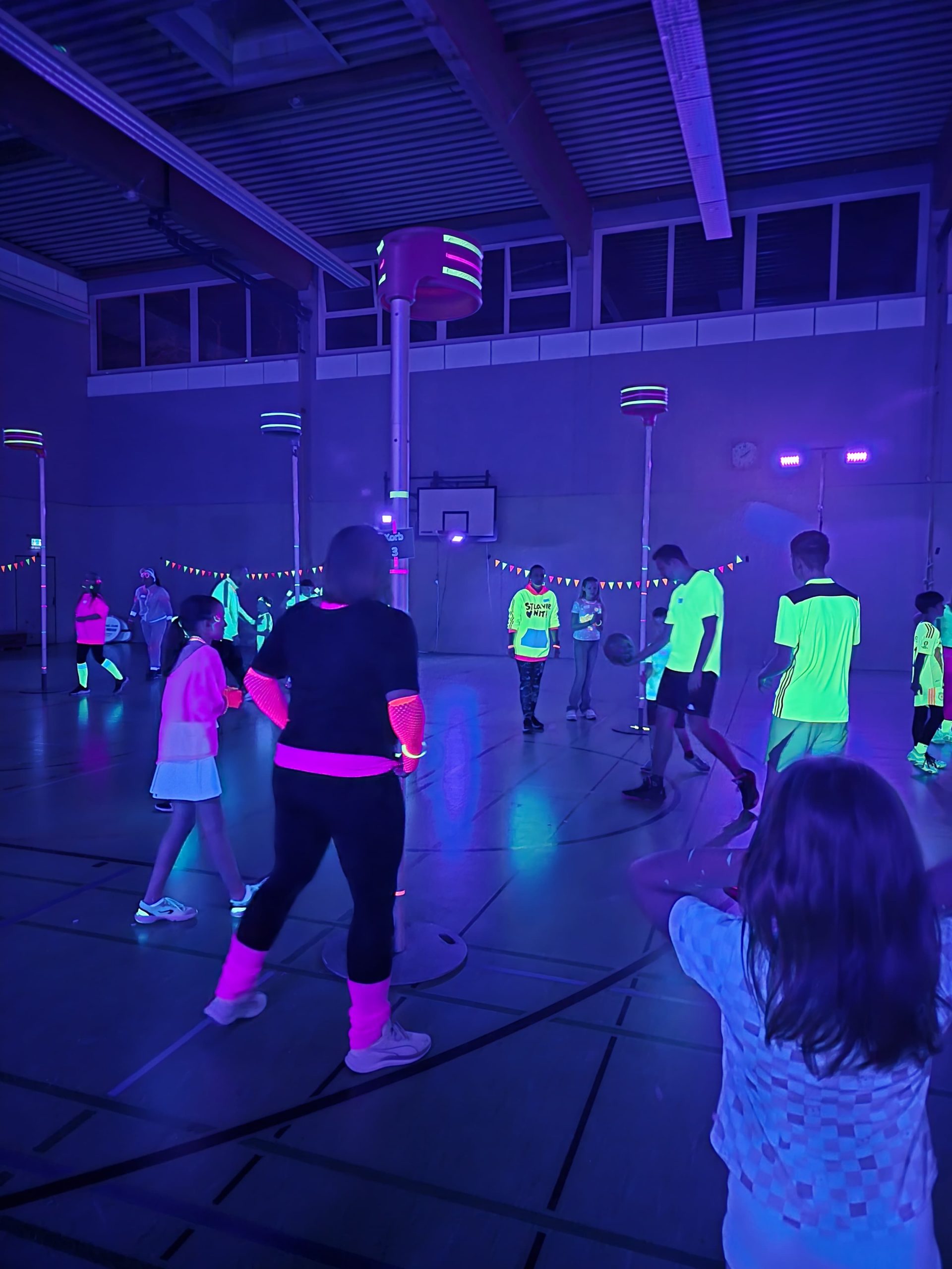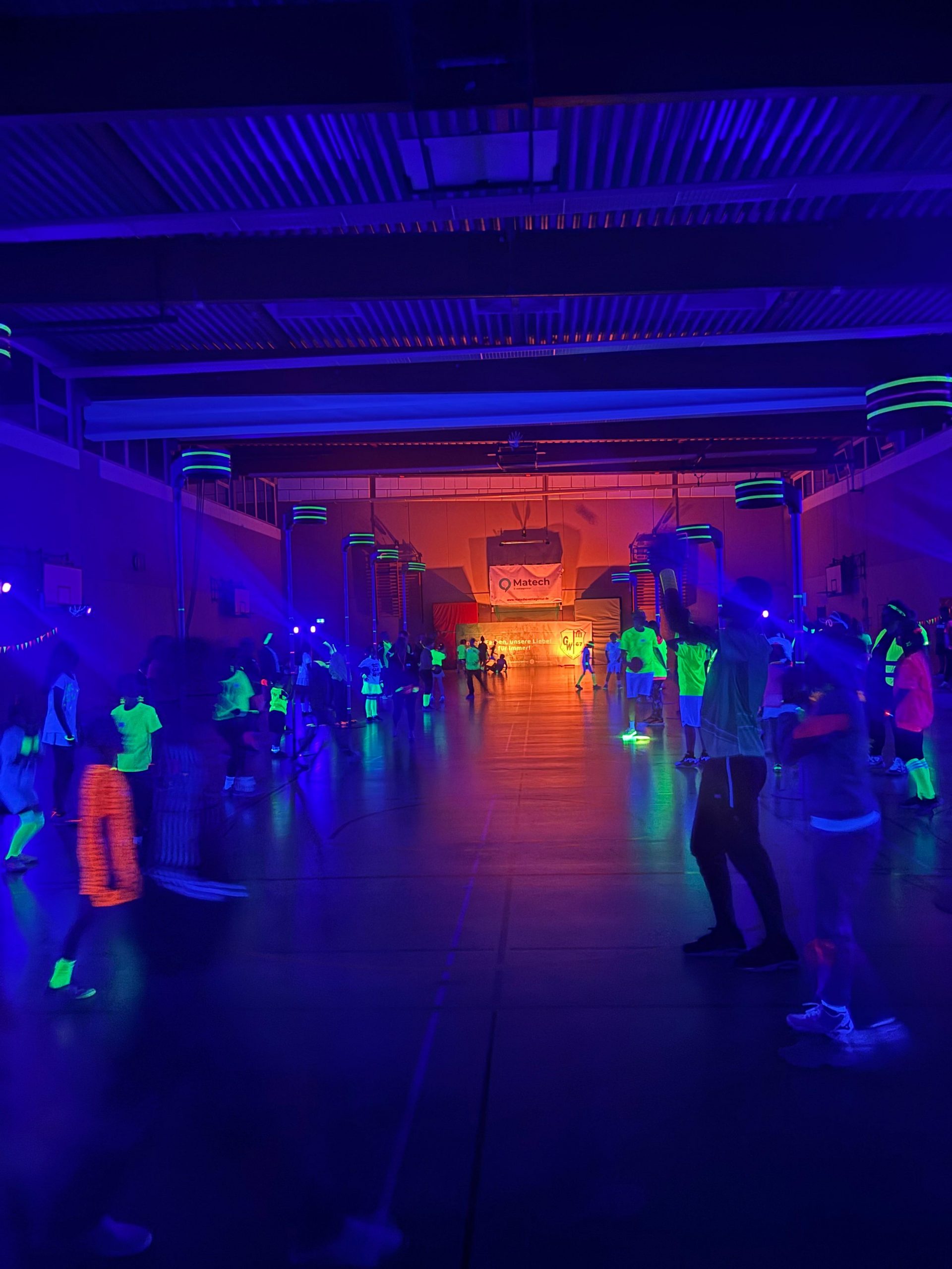 Das Besondere an diesem Abend: Die Halle war komplett abgedunkelt. Nur die Körbe und die Spielerinnen und Spieler selbst leuchteten im Neonlicht. Die besondere Atmosphäre sorgte von Beginn an für Begeisterung und verlieh dem Turnier einen einzigartigen Charakter.
